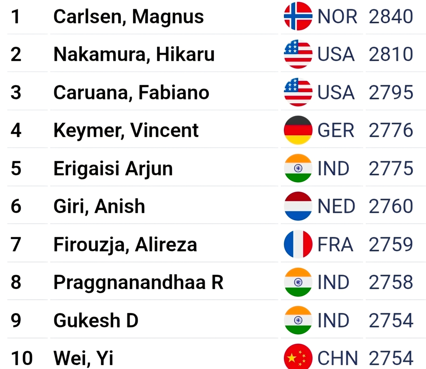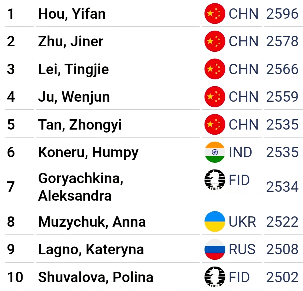 World Top 10 February, 2026